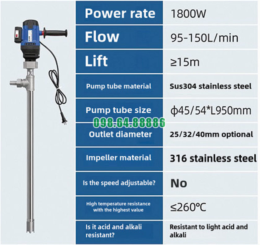 Trong môi trường sản xuất công nghiệp, việc sang chiết các loại chất lỏng nhiệt độ cao bằng phương pháp thủ công không chỉ tốn nhiều công sức mà còn tiềm ẩn rủi ro mất an toàn. Giảm thiểu sức lao động bằng cách dùng Bơm thùng phuy lỏng nhiệt độ cao JDT-1800W-G260 là giải pháp giúp doanh nghiệp tối ưu nhân lực, nâng cao hiệu quả làm việc và cải thiện điều kiện lao động.
