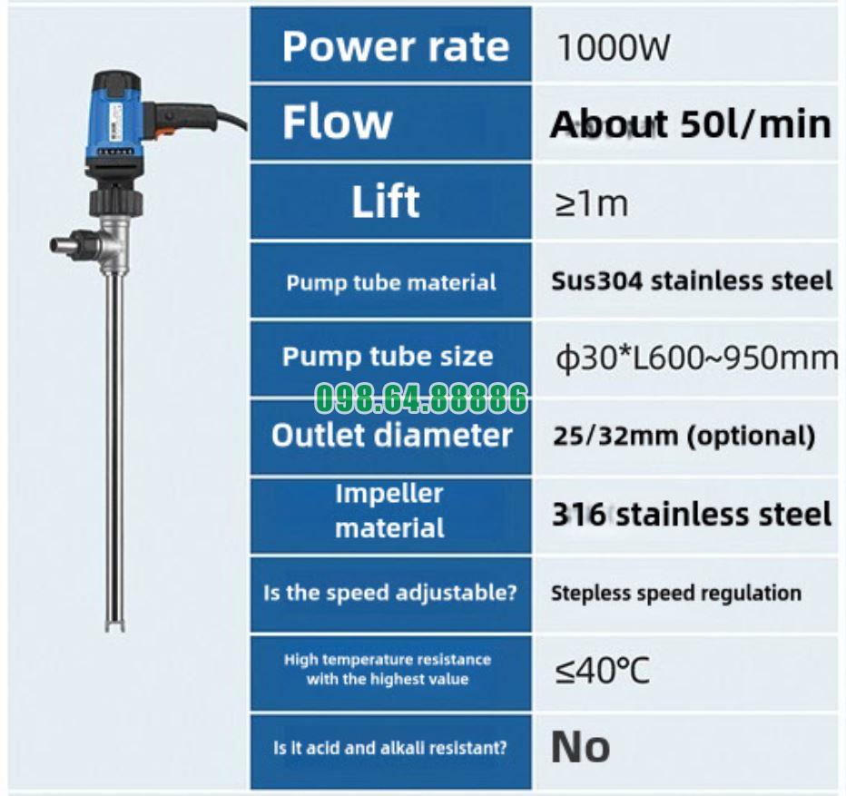 Bơm dầu mini công suất lớn cho phuy JDT-1000W-30SUS304