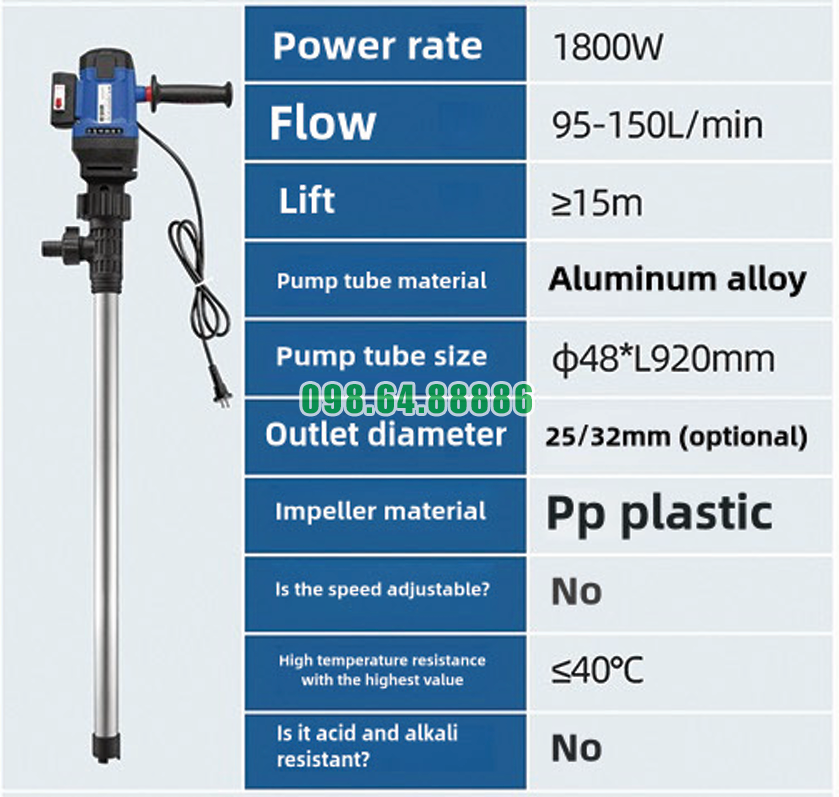 Nhờ khả năng tạo áp suất hút tốt, bơm điện thùng phuy cao cấp JDT-1800W-L92 mang lại: