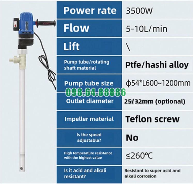 Bơm hóa chất chuyên dụng chống ăn mòn JDT-3500W-PTGELG