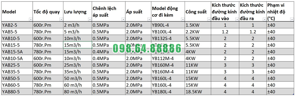 Với công suất 1.5KW và lưu lượng phù hợp, Bơm khí hóa lỏng YAB2-5 đáp ứng tốt nhu cầu của các kho bãi nông nghiệp mà không gây lãng phí năng lượng.