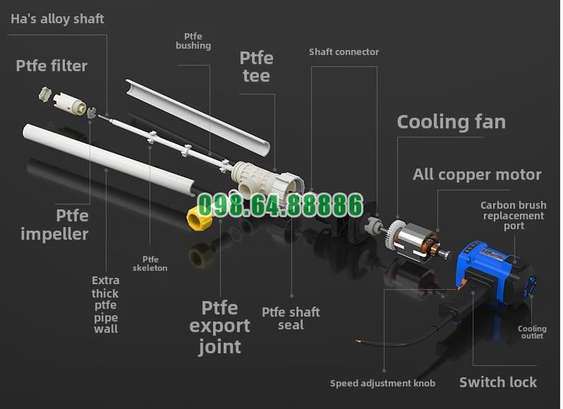 Một trong những điểm mạnh về công suất của Máy bơm chất lỏng điện cắm điện JDT-1800W-RPP là khả năng tạo lực quay mạnh mẽ cho trục và cánh bơm. Khi động cơ hoạt động, lực quay được truyền trực tiếp xuống trục bơm, làm cánh bơm quay với tốc độ cao.