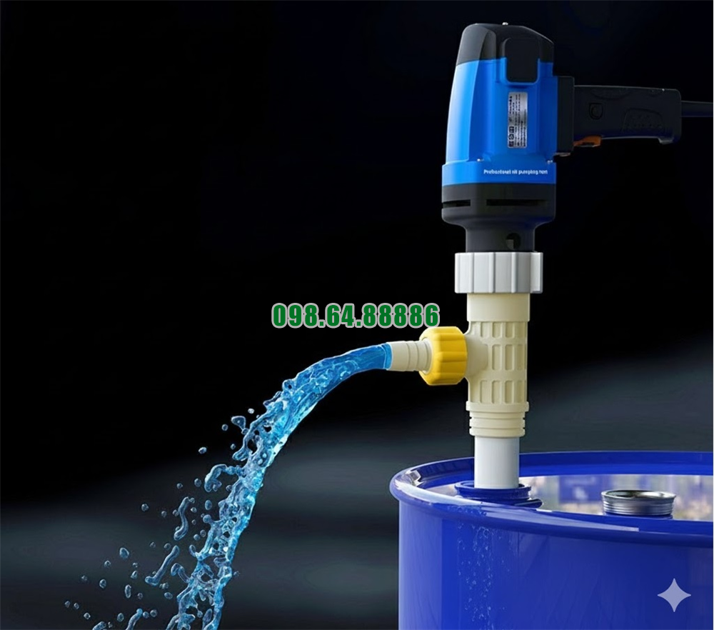 Nhờ công suất cao, máy bơm có thể vận chuyển chất lỏng nhanh chóng từ thùng phuy hoặc bồn chứa, góp phần nâng cao hiệu suất làm việc trong các quy trình sản xuất công nghiệp.