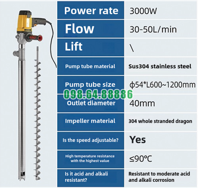 Nhờ cấu tạo chắc chắn và thiết kế tối ưu, Bơm điện cầm tay hút thùng phuy JDT-3000W-YT mang lại hiệu suất vận hành cao, giúp quá trình bơm hút và sang chiết chất lỏng trong công nghiệp trở nên nhanh chóng và hiệu quả.