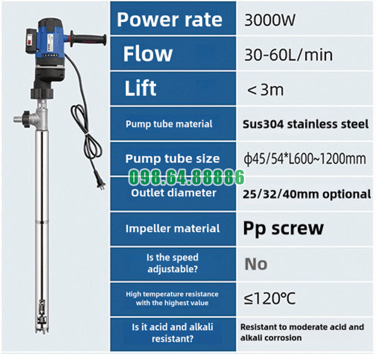 Một lưu ý quan trọng khi dùng Máy bơm thùng phuy inox JDT-3000W-LGG120 là lựa chọn chất lỏng phù hợp với thông số kỹ thuật của thiết bị.