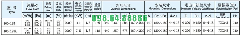 Máy bơm trục thẳng đứng, bơm inline, bơm tăng áp ISG100-125, IRG100-125 11kw, 100m3, 20m