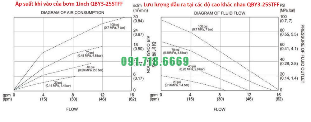 Đường cong hiệu suất của bơm màng khí nén kích thước Dn50 QBY3-25STFF