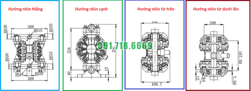 Bản vẽ kích thước của bơm màng khí nén kích thước Dn50 QBY3-25STFF