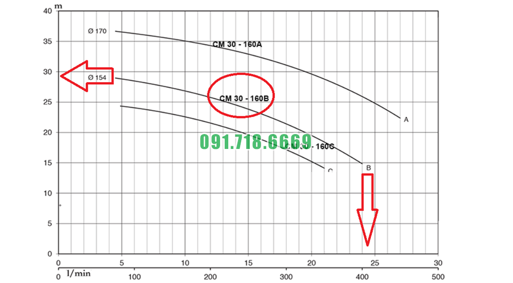 Đường cong hiệu suất máy bơm nước li tâm CM32-200C đường thoát đầu vào ra DN50