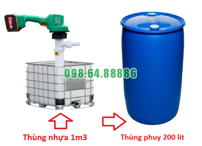 Bơm axit từ thùng phuy và tank 1m3 ra ngoài dùng pin 6A động cơ 750w
