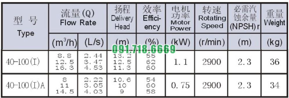 Bơm nước nằm ngang SLW-ISW40-100-I độ hút sâu 2.3m