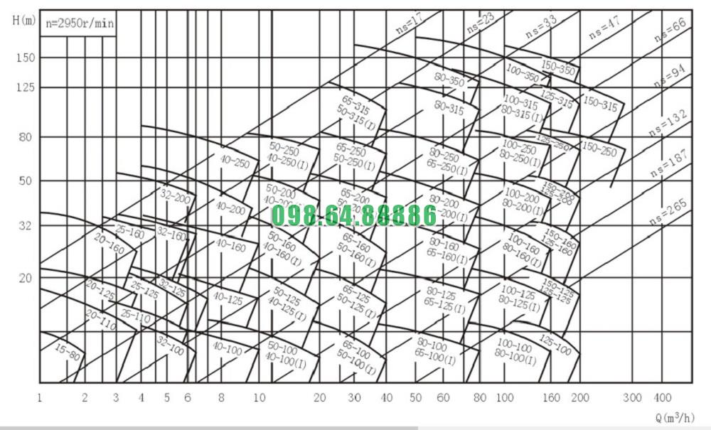 Đường cong hiệu suất bơm nước nằm ngang SLW100-ISW100-200-I độ hút sâu 4.0m