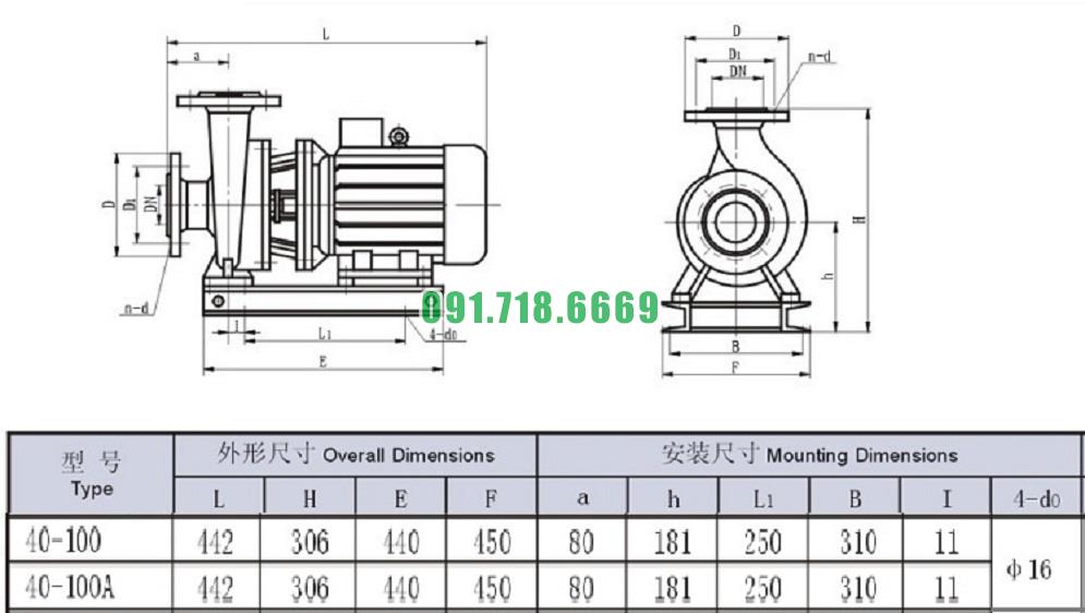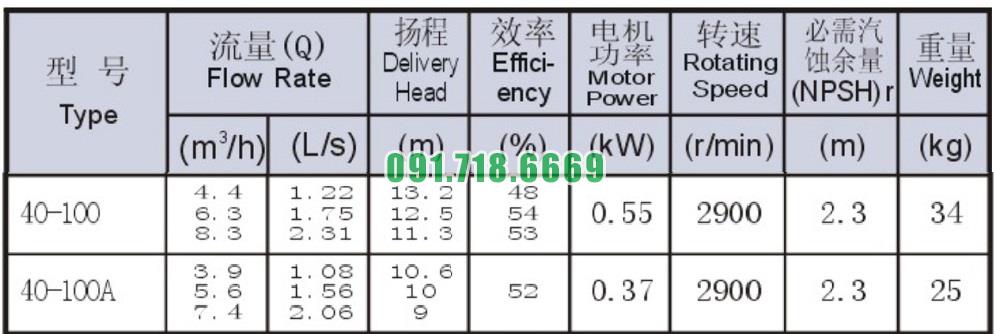 Bơm nước trục ngang SLW-ISW40-100 lưu lượng 2.31 L/s