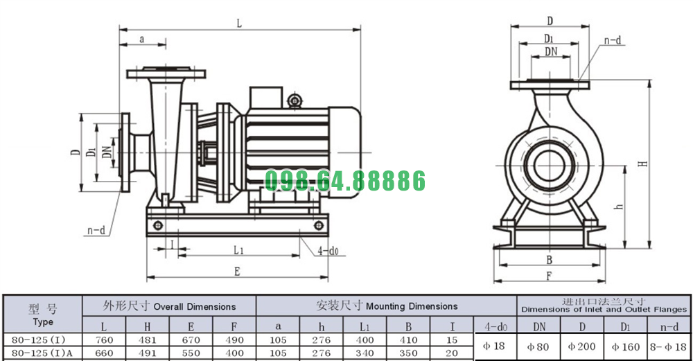 Bơm nước trục ngang SLW80-ISW80-125-I lưu lượng 36.1 L/s