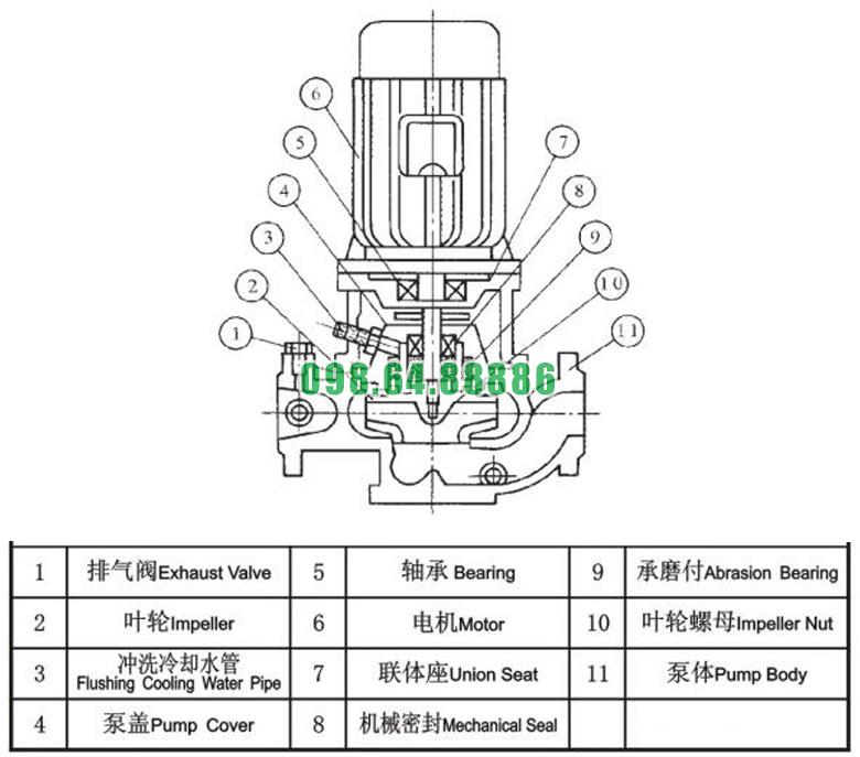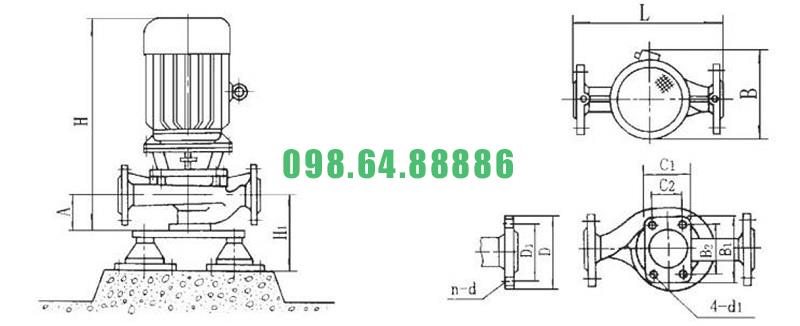 Máy bơm ly tâm trục đứng ISG25-125 động cơ 0.75 kw lưu lượng 1.11 L/s