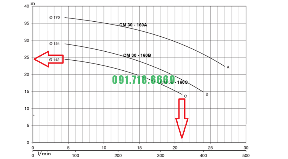 Hiệu suất của máy bơm nước li tâm CM32-160C đường kính đầu vào ra DN50