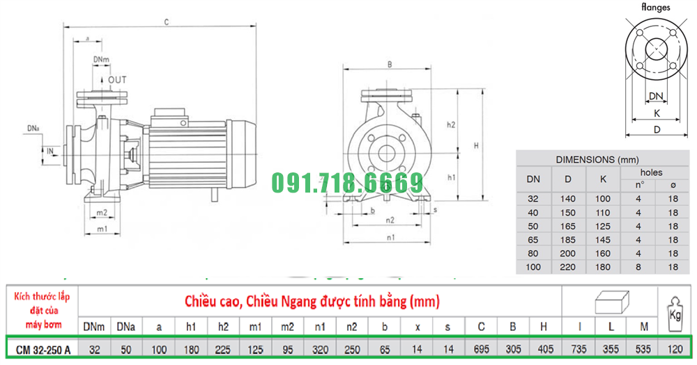 | CM40 - 125C | 30 m3 / h | 17 m | 1.5 kw | 380 v | Dn65 / 40 mm | Vỏ gang FC200